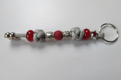 Sleutelhanger in zwart katoen, getakeld met koperen paracord.