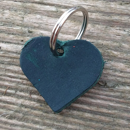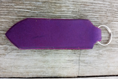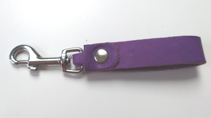 Sleutelhanger in acid purple, getakeld met groen leder.
